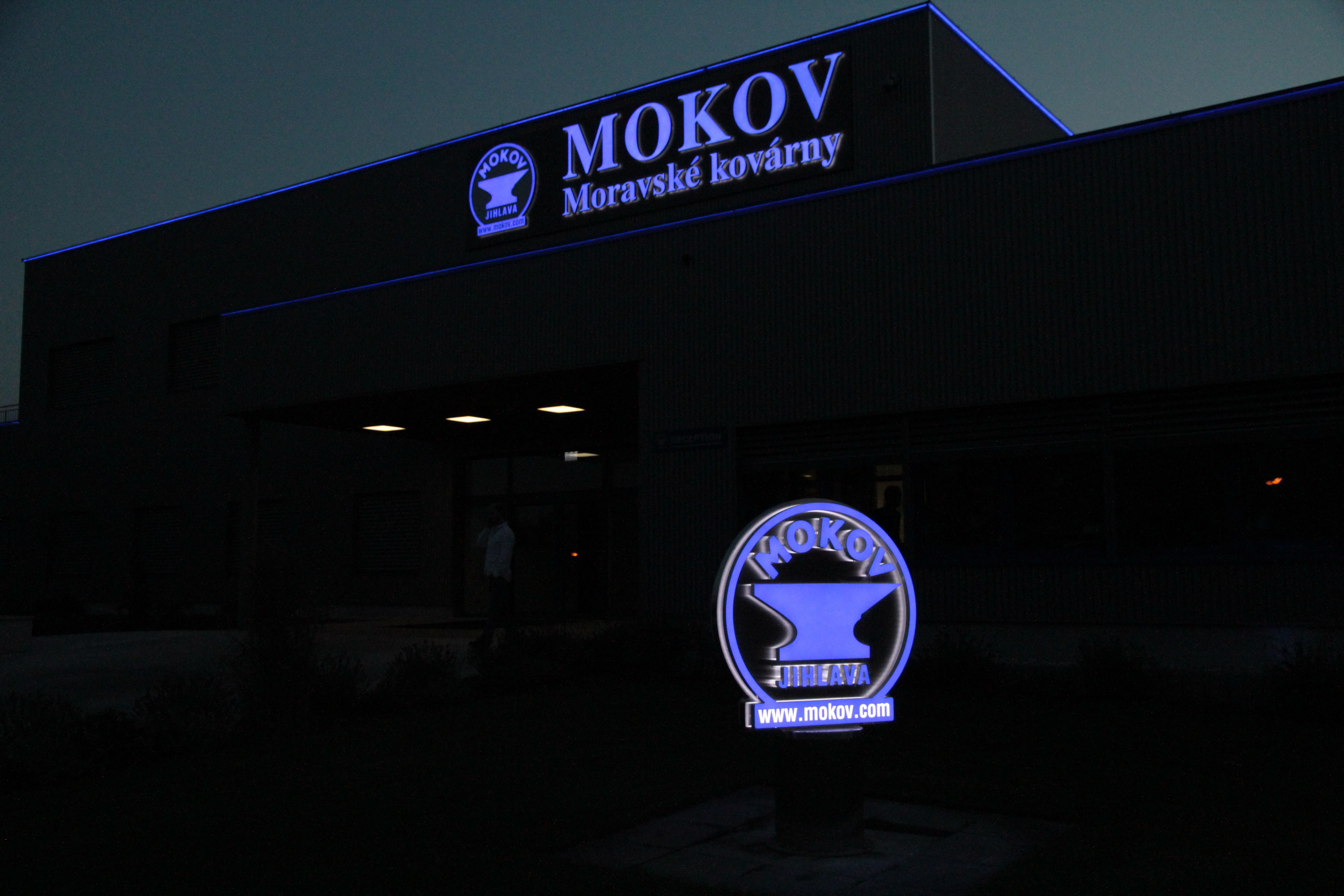 Reklama, která je ve dne bílá a v noci svítí modře - i to s Unique Light můžete realizovat.